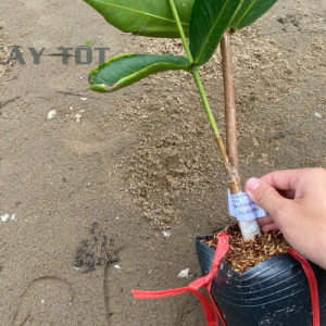 Dùng bao lưới bọc bầu, dùng xơ dừa hoặc rơm giữ ẩm, buộc chắc gốc để không bị rung lắc.